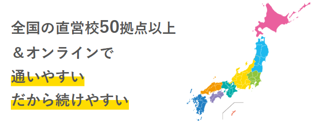- 直営校は全国に50拠点以上!“CloudSchool”もあるので全国どこからでも学習可能