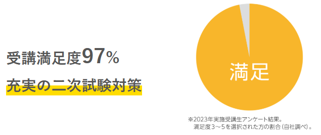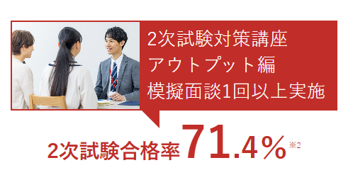 - 2次試験合格率は71.4%!受講満足度97%の講座で確実に合格に近づける!